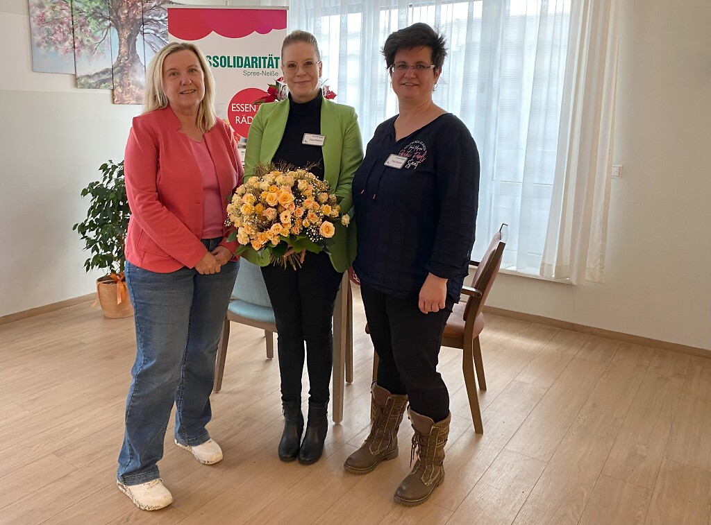 Die Bürgermeisterin, Simone Taubenek, gratulierte im Namen der Stadt Forst (Lausitz) der Geschäftsführerin der Volkssolidarität, Sabrina Queißert, und der Leiterin der Residenz, Stefanie Steffens, zu diesem besonderen Jubiläum.