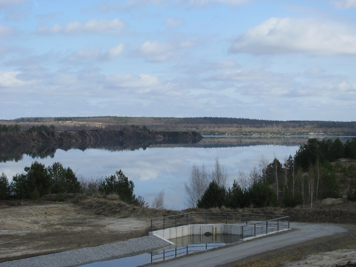 Noch etwa 13,50 m Wasserhöhe bzw. ein Viertel der Wasserfläche fehlen dem Klinger See bis zu seinem geplanten endgültigen Ausmaß (Stand 02/2026).