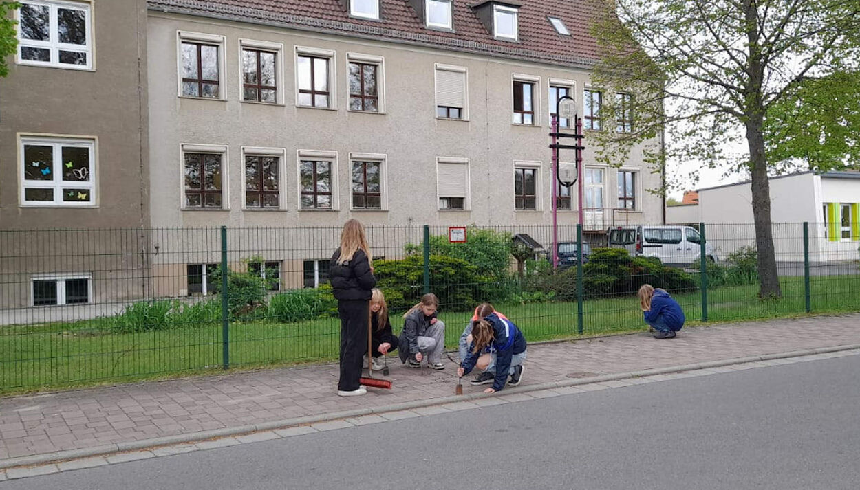Das Material, die Arbeitsgeräte und der Entsorgungscontainer wurden vom städtischen Betriebshof in Organisation mit dem Fachbereich Bildung und Soziales zur Verfügung gestellt.