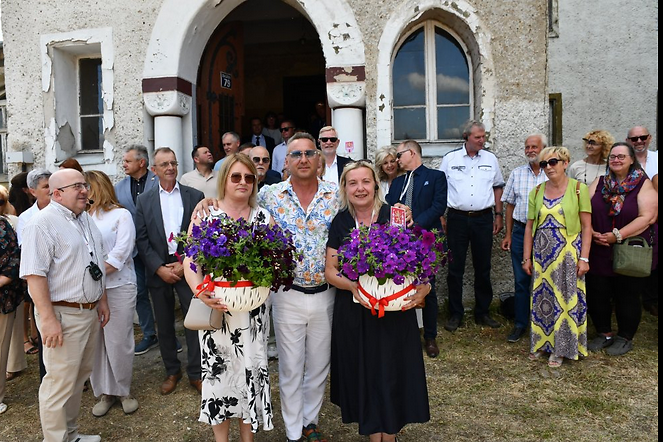 Die Feierlichkeiten begannen mit einem Treffen auf dem Hof des ehemaligen Schlosses in Dolzig/Dłużek, wo der Bürgermeister von Lubsko, Janusz Dudojć, die moderne Geschichte dieses Ortes erläuterte. Er informierte darüber, dass die Gemeinde das historische Gebäude im Dezember 2023 vom Nationalen Zentrum für Landwirtschaftliche Unterstützung übernommen hatte und seitdem Maßnahmen ergriffen wurden, um das Denkmal vor weiteren Schäden zu bewahren. Der Bürgermeister stellte zudem ein Konzept zur Revitalisierung des Ortes vor und hob hervor, dass dieser in Zukunft ein gemeinsames Projekt der Partnerstädte sein könnte.