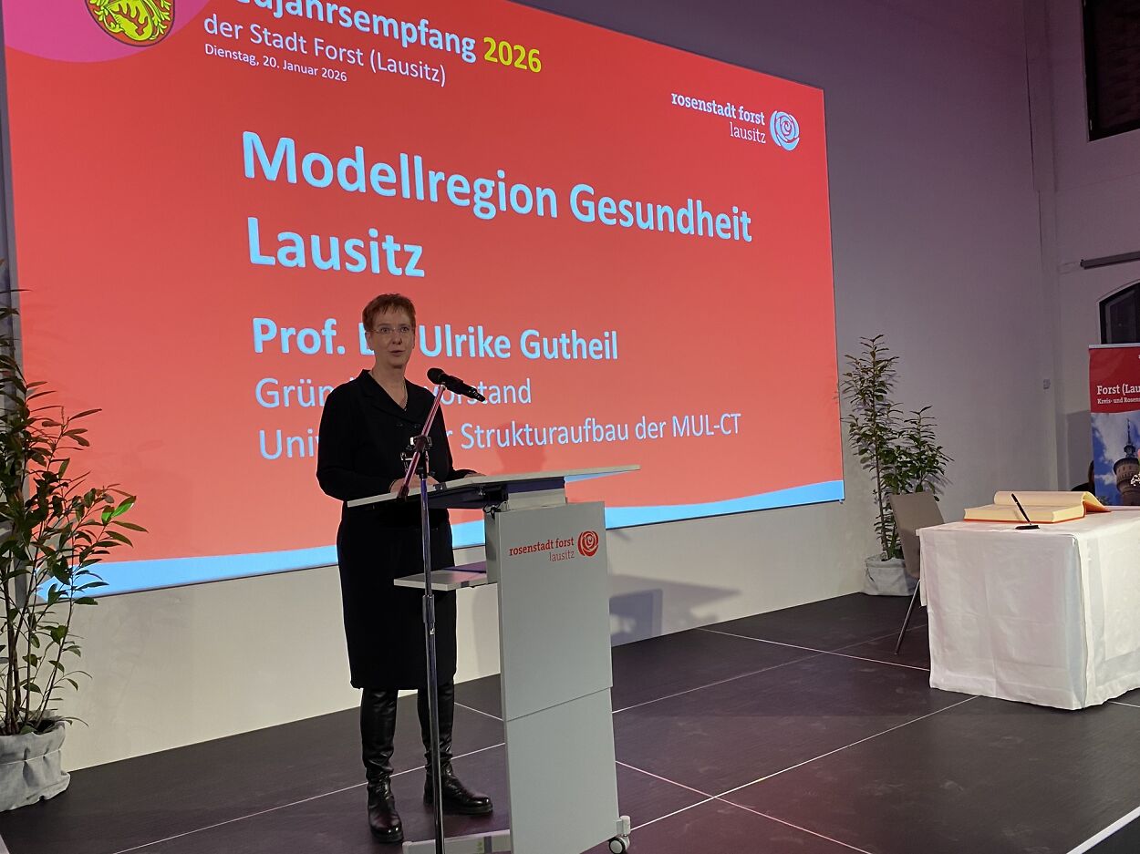 Ein Fachvortrag der Gründungsvorständin der Medizinischen Universität Lausitz Carl Thiem, Prof. Dr. Ulrike Gutheil, zum Thema “Modellregion Gesundheit Lausitz“ ergänzte das Programm.
