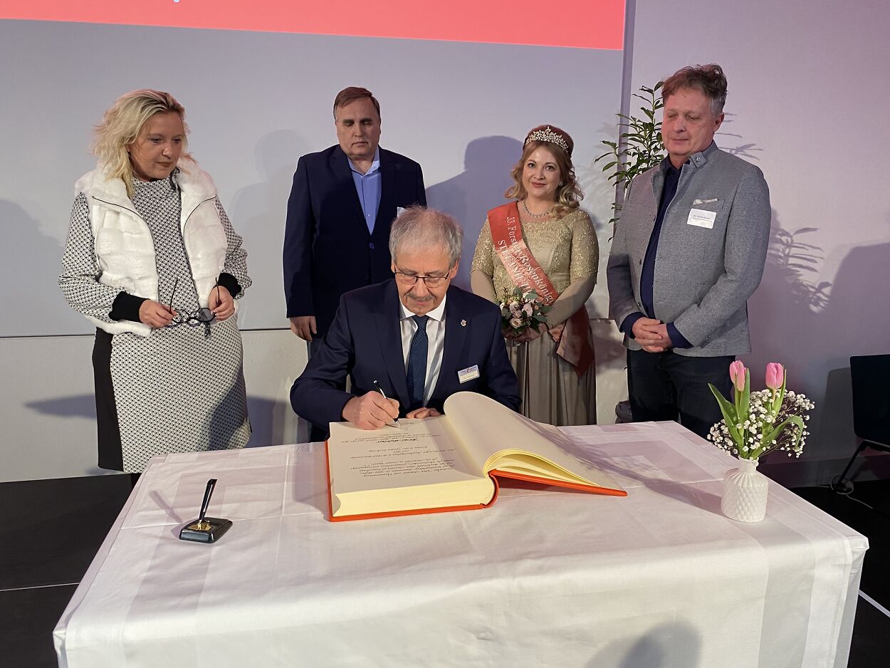 Ein besonderer Höhepunkt des Abends war der Eintrag des Landrates des Landkreises Spree-Neiße, Harald Altekrüger, in das Goldene Buch der Stadt Forst (Lausitz).