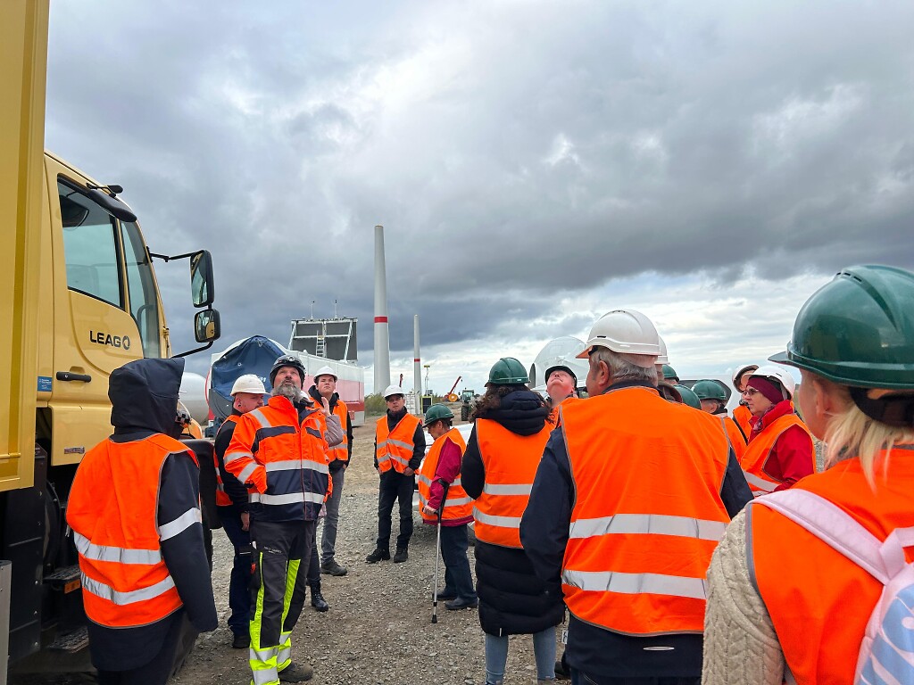 An einer der entstehenden Windkraftanlagen erläuterte Bauleiter Ingo Zimmermann den Ablauf der Montage und erklärte anschaulich die einzelnen Bauteile einer Anlage – vom Fundament bis zur Gondel. Die Besucherinnen und Besucher stellten zahlreiche Fragen, die zum großen Teil direkt beantwortet werden konnten. Einige Themen sollen in weiteren Gesprächen vertieft werden.