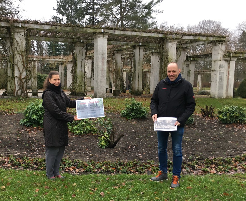 Am 17.12.2021 trafen sich die Inhaberin der Hufeland - Apotheke Ulrike Jurack und der Werkleiter des Eigenbetriebes Kultur, Tourismus, Marketing Rosenstadt Forst (Lausitz) Stefan Palm im Wehrinselpark im Ostdeutschen Rosengarten zu einem Vorort-Termin.