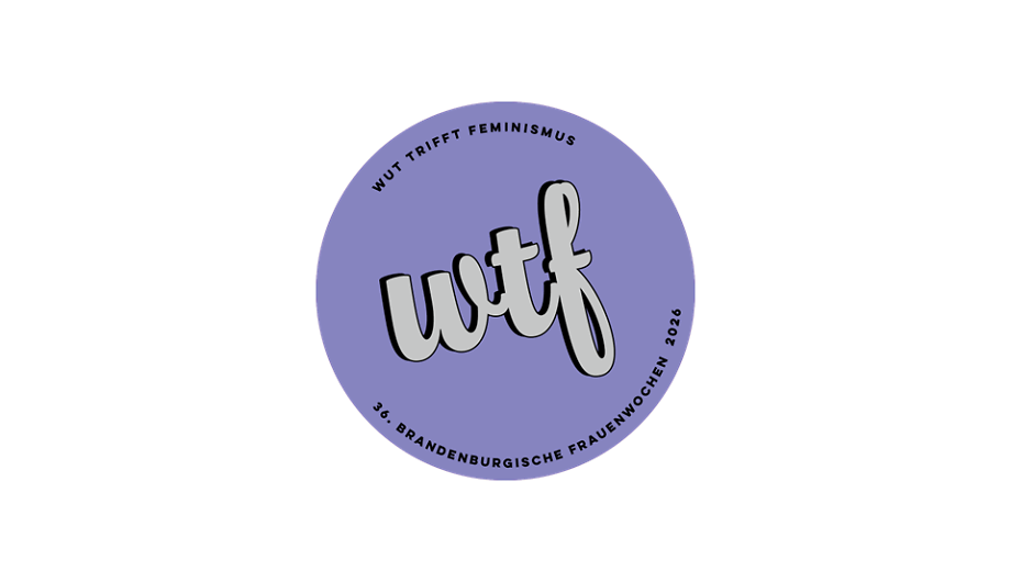 Lila Kreis mit der Aufschrift: WTF - Wut trifft Feminismus - 36. Brandenburger Frauenwoche